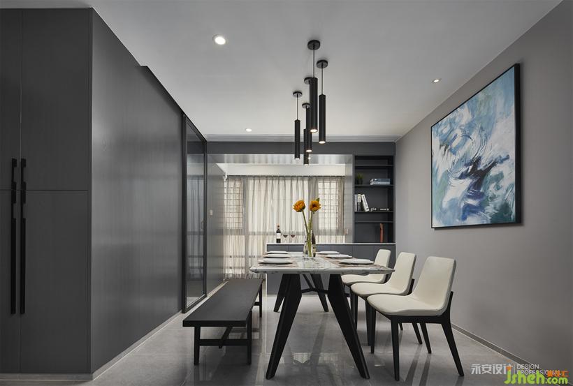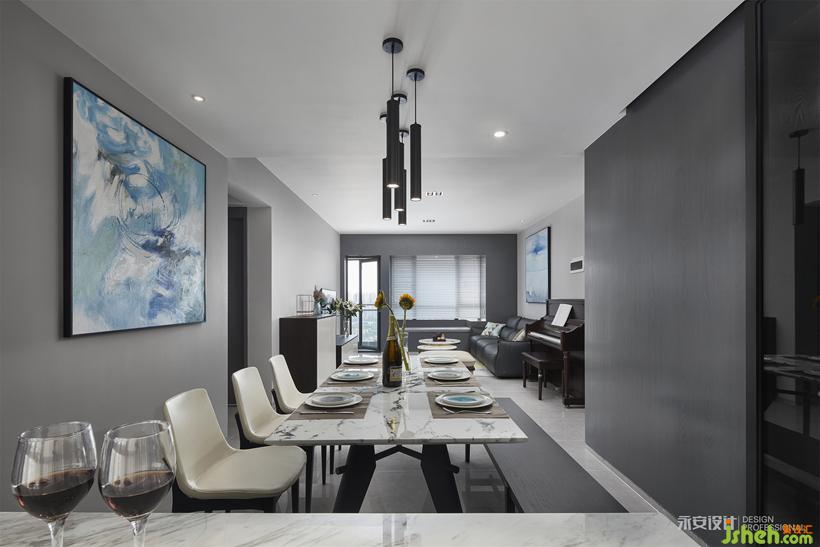 客餐廳設(shè)計(jì)簡(jiǎn)約舒適,以黑白灰的色調(diào)為主,整體色調(diào)統(tǒng)一而又大方,金屬擺件的輕巧精致,花果綠植讓室內(nèi)充滿生機(jī),墻上掛畫更是客廳的點(diǎn)睛之筆。設(shè)計(jì)公司