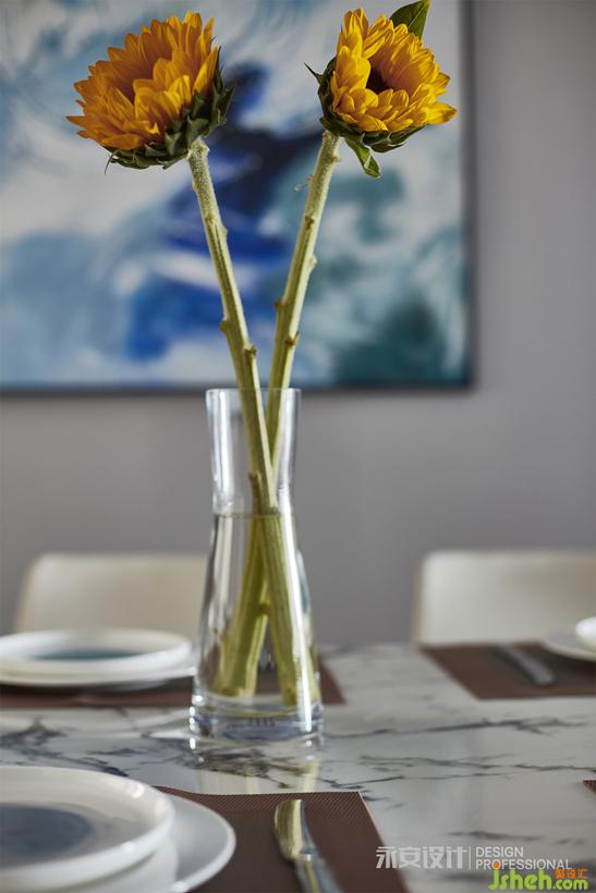 把原來飄窗設(shè)計(jì)成為跟主沙發(fā)一體,深受業(yè)主的喜愛。有客人來也可以在此落座,喝喝下午茶,聊聊天。飄窗旁的百合以冉冉上升的姿態(tài),在傾灑的光影下,伴隨著柔和的曲調(diào)盈盈飄動(dòng),打破了灰色基調(diào)的視覺塊面??諝庵袕浡两降臐庥羟殂?、微醺的浪漫,調(diào)動(dòng)著觀者的感官。設(shè)計(jì)公司