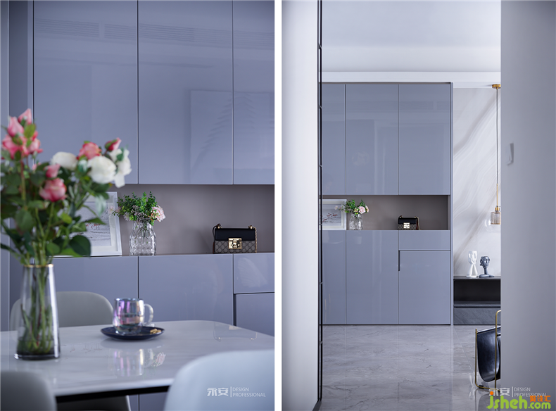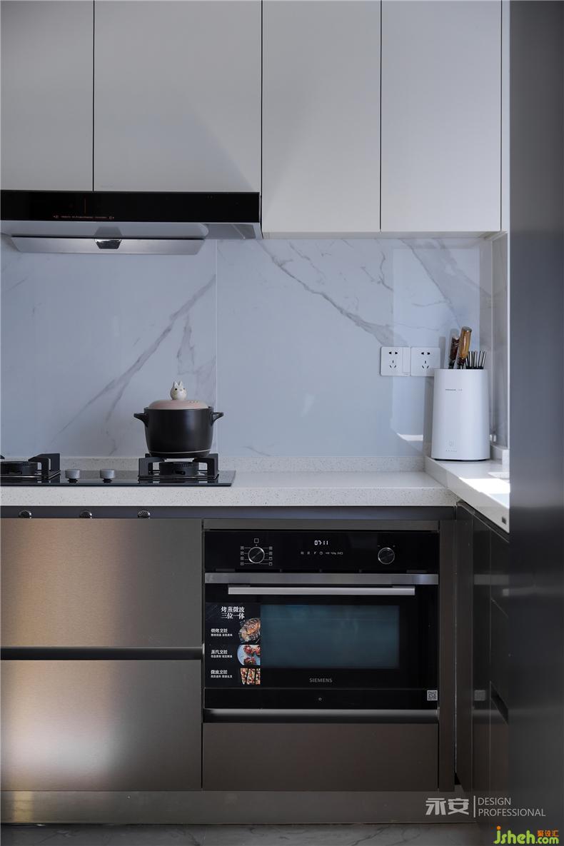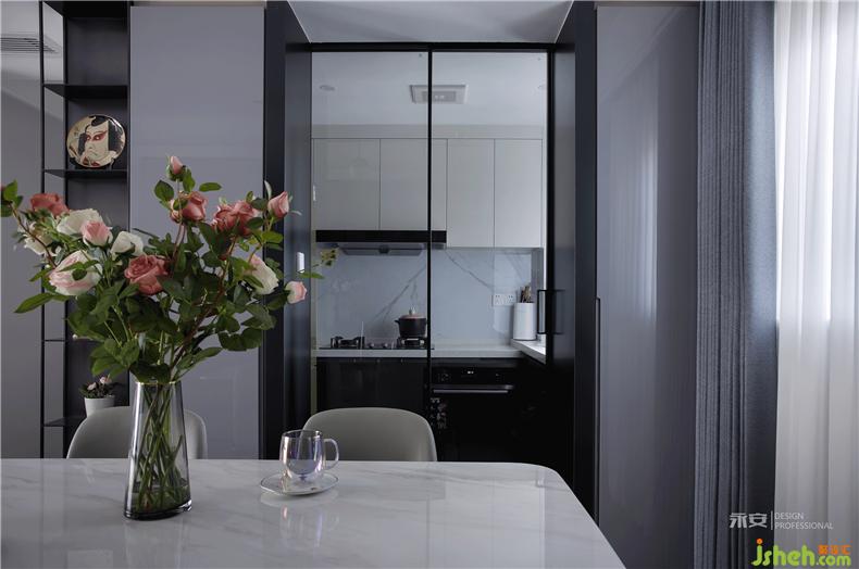 廚房緊鄰用餐區(qū),貫徹設(shè)計(jì)語(yǔ)言的流動(dòng)性與連續(xù)性,使之成為一個(gè)和諧的整體,室內(nèi)設(shè)計(jì)師從做菜到上菜,可以隨時(shí)感受到家人間的配合與情感交互