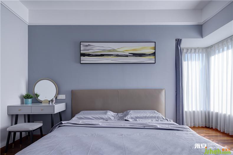 如何在紛雜的世界上,讓居者的內(nèi)心處于一個(gè)相對(duì)空靈的狀態(tài),這是主臥的設(shè)計(jì)主旨。室內(nèi)設(shè)計(jì)師以淡雅的色調(diào)營(yíng)造出自然純粹休憩氛圍,在出入之間,構(gòu)建一個(gè)令人放松舒適的烏托邦式睡眠環(huán)境