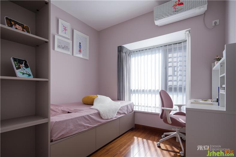 業(yè)主家的孩子活潑可愛(ài)、多才多藝,作為他們成長(zhǎng)環(huán)境的孩童房,室內(nèi)設(shè)計(jì)師設(shè)計(jì)師著力于適用性與趣味性的差異化表達(dá),男孩房的純真童趣、女孩房的溫馨文靜,創(chuàng)作出有別于現(xiàn)代主義冷冽的溫馨感