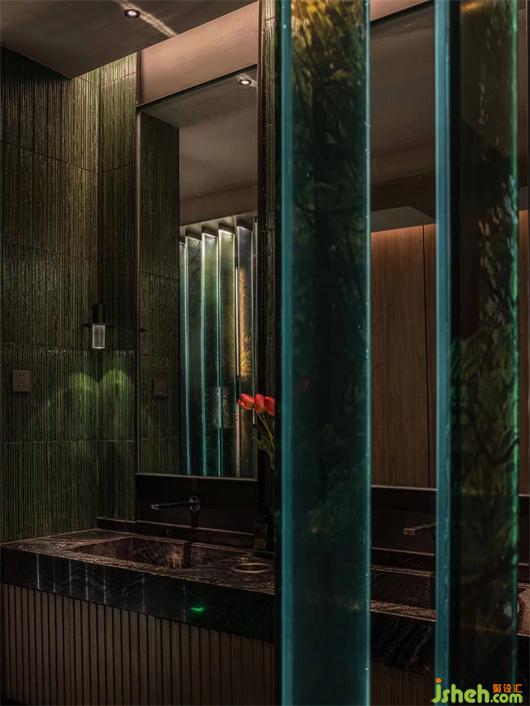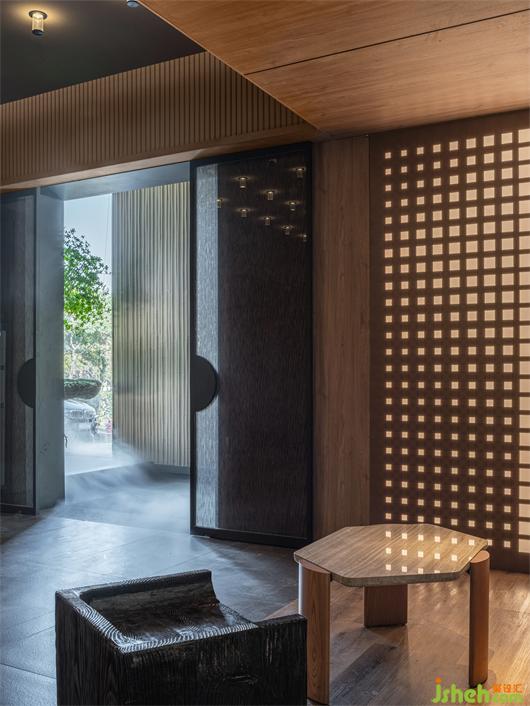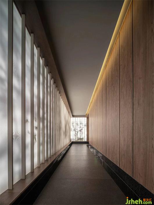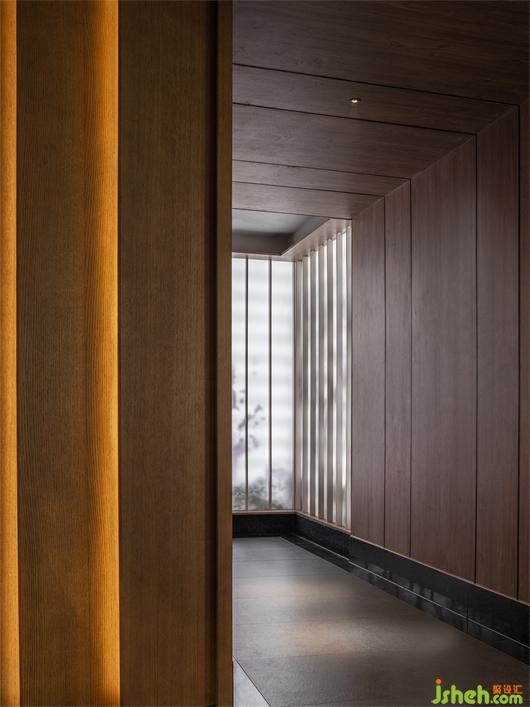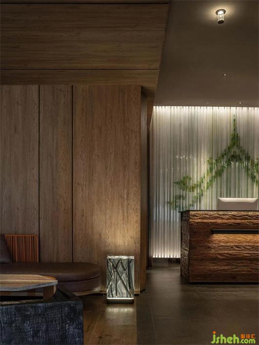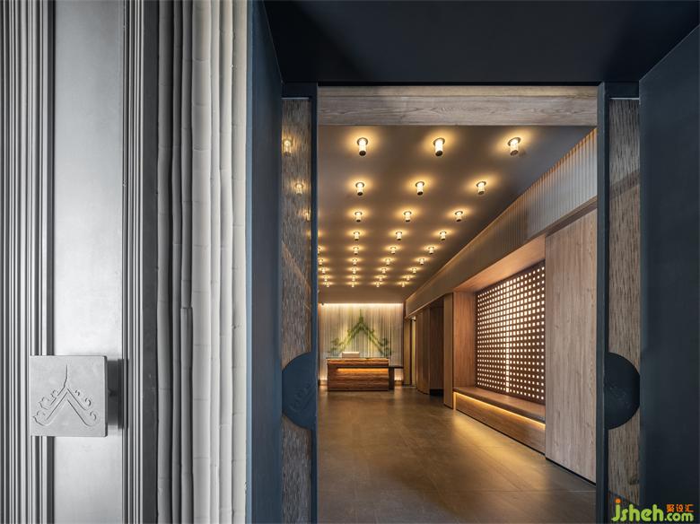 及至過(guò)道,豎向的格柵將墻面的光感推遠(yuǎn),養(yǎng)生店設(shè)計(jì)形成意境上的虛寫(xiě),加強(qiáng)走過(guò)時(shí)視線上的秩序與變化,給人以聯(lián)想的空間;