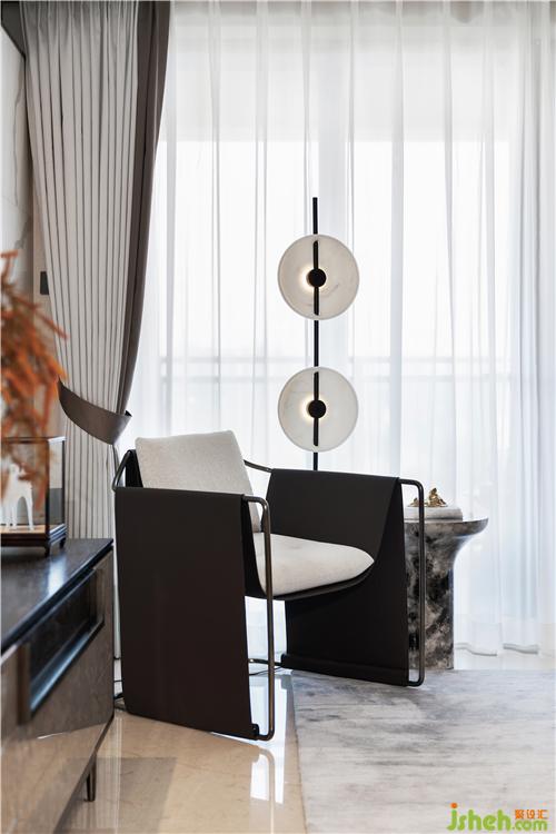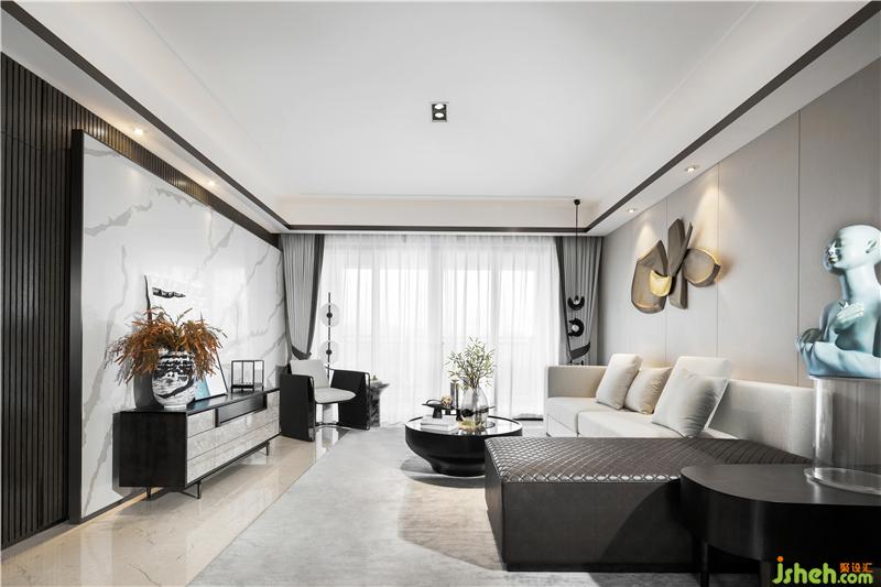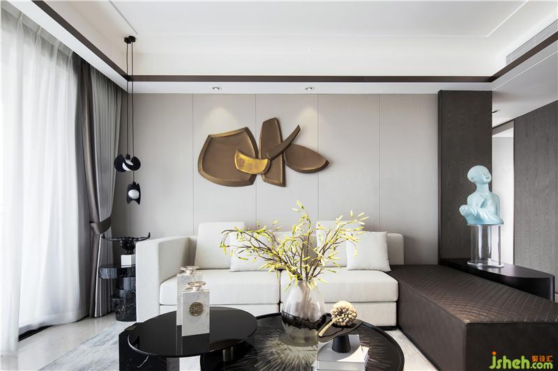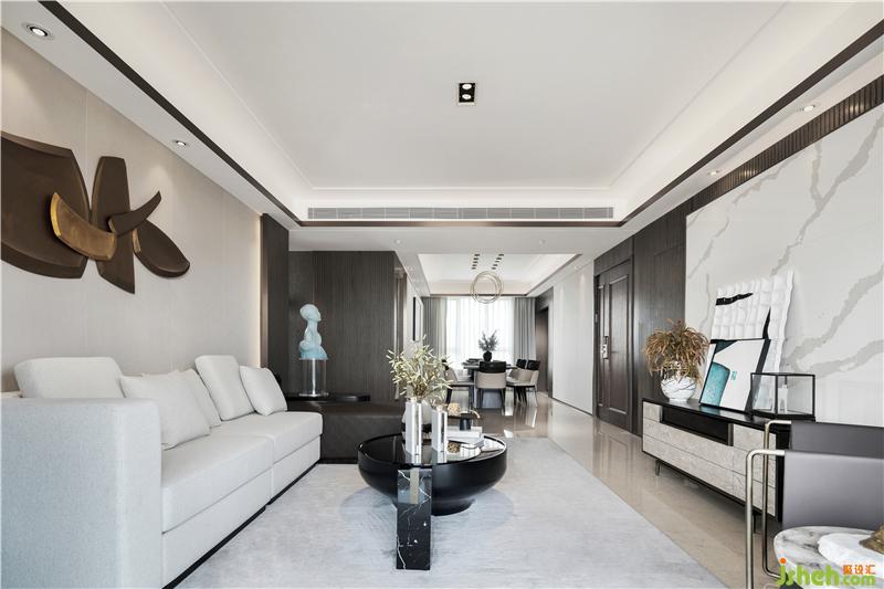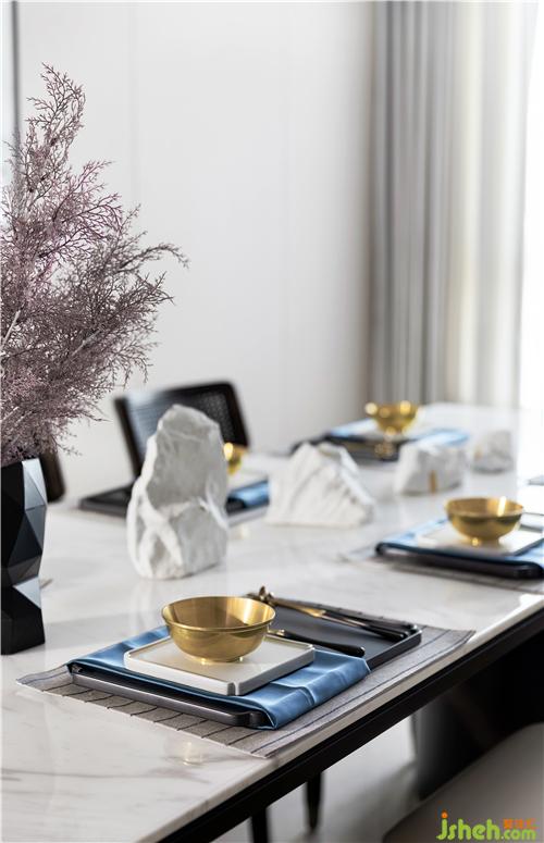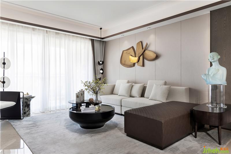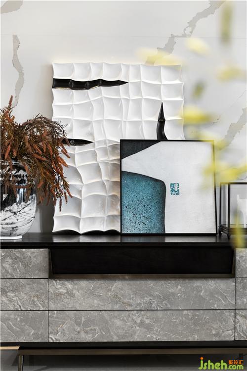 在家具及用品陳設(shè)的選用上,多以簡(jiǎn)潔利落的現(xiàn)代造型家居與東方元素進(jìn)行呼應(yīng),幾何體的皮質(zhì)沙發(fā)和缽型茶幾、前衛(wèi)廓形的電視柜和花藝瓷器、細(xì)膩禪意的佛像和玻璃底座......