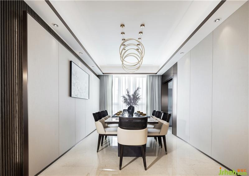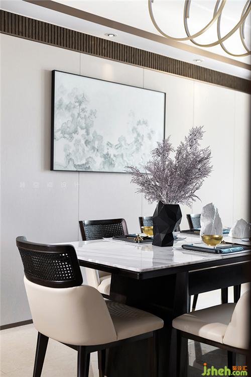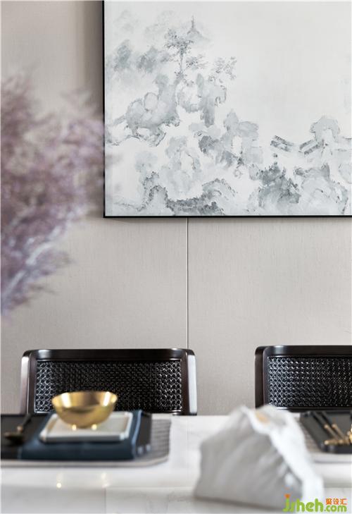 寬敞通透的餐廳、長(zhǎng)形餐桌和考究的器具,深圳室內(nèi)設(shè)計(jì)師極致的展現(xiàn)了品質(zhì)生活的舒適感及精致感,墻面上的墨色畫(huà)作使空間氤氳著悠長(zhǎng)連綿的詩(shī)意。