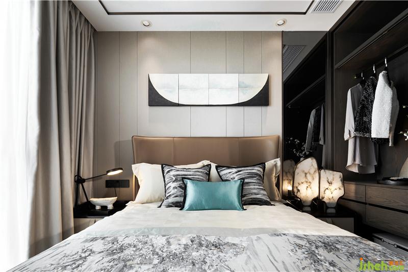 主臥的色調(diào)有一種寧心安神的吸引,深圳室內(nèi)設(shè)計(jì)師背景墻褐色和米黃的硬包組合似是一劑助眠的良方;一日的勞作后,能夠無慮的安心入眠,無疑是件極其美哉的事情了!
