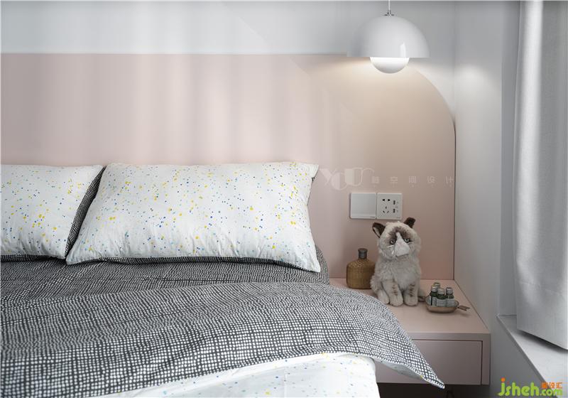 亞麻灰配上小碎花的床品,干凈嫻雅,清清淡淡、舒舒服服,一副很好睡的樣子。