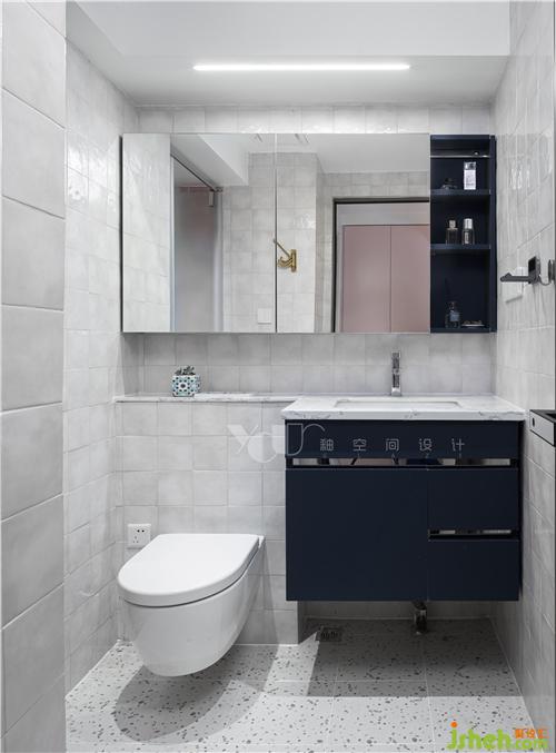 換了一身白衣,面包磚和水磨石這對活潑可愛的組合,又將原本不大的衛(wèi)生間空間變得靈動有趣起來,深藍的柜色與全屋空間的配色進行了一個呼應(yīng),也穩(wěn)住了場子、讓整白的空間不至于太過輕飄。