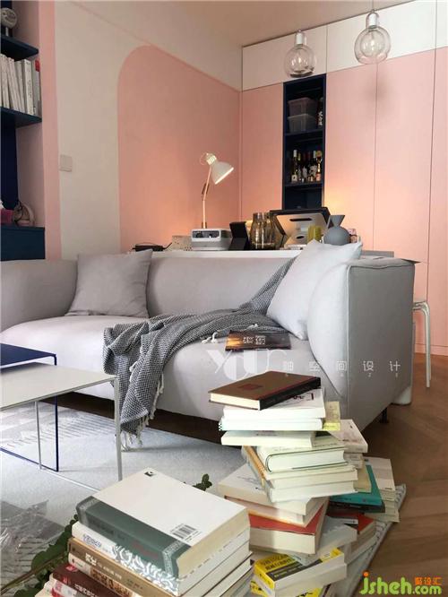 浪漫滿屋本屋了——粉色的面包磚與柜門,水磨石的臺面和地面,同質(zhì)的夢幻氣息在延續(xù)。擱板、臺面上放置的粉嫩物件器皿,在燈光的照耀下,愈發(fā)可愛迷人。