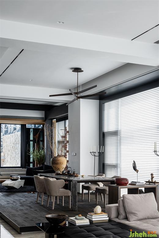 從副廳、餐廳過(guò)渡到客廳,空間的穩(wěn)重感逐漸增強(qiáng),冷靜而情感細(xì)膩的調(diào)性,而這一切,無(wú)需張揚(yáng),只需以簡(jiǎn)馭繁,靜默喚醒;無(wú)論是日間穿透窗簾自然的光線,深圳別墅裝修設(shè)計(jì)還是夜間氛圍柔和的照明情景,無(wú)論是與家人好友聚會(huì)聊天,還是獨(dú)自休憩放松。
