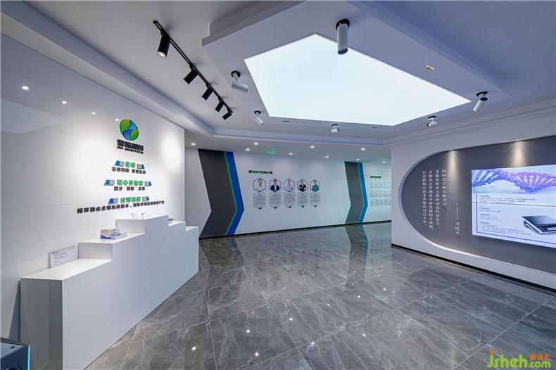 整體空間以白色素雅基調(diào)作為主導(dǎo)地位,辦公室設(shè)計適度的灰色進(jìn)行過渡,使用科技藍(lán)與森林綠點綴空間,以低飽和度色彩呈現(xiàn),展現(xiàn)出生物基因科技公司的純凈與唯美、清新與活力,勾勒出一個充滿生物科技感的新型辦公空間。