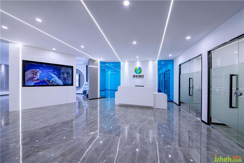 本案室內(nèi)設(shè)計秉承現(xiàn)代、簡約、大氣的基本設(shè)計原則,融入時尚、人文的因素,辦公室設(shè)計既汲取了生物基因行業(yè)特征,又體現(xiàn)出科創(chuàng)型公司獨特的企業(yè)形象和文化。最初的設(shè)計靈感來源于生物基因序列,以動感、靈動的折線形來進(jìn)行平面布局,模糊了空間界限。