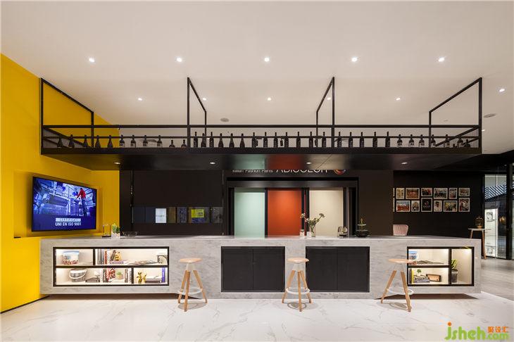一進(jìn)門首先看到的是吧臺(tái)區(qū),大理石吧臺(tái)明亮大氣,質(zhì)感十足,木質(zhì)的吧臺(tái)椅帶給人舒適的使用體驗(yàn)。黑色的背景墻里“藏”著拉板門,門上全部由ADIcolor單色涂料涂刷而成,展示了不同顏色的不同風(fēng)格特點(diǎn),沉靜或是活潑、簡(jiǎn)潔大方或是雍容華貴,都可以用單色涂料表現(xiàn)出來(lái)。
