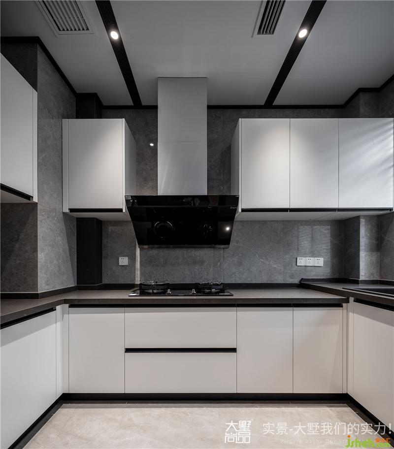 純白櫥柜、地柜搭配黑色臺(tái)面