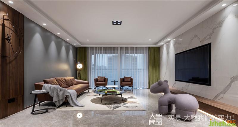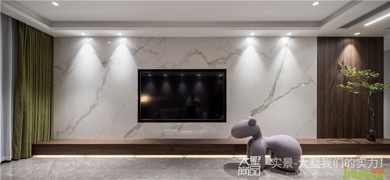 除去多余的修飾,黑色電視鑲嵌在大理石的墻面中,憨態(tài)可掬的小馬座椅為空間增添了幾分靈動(dòng)的樂趣。