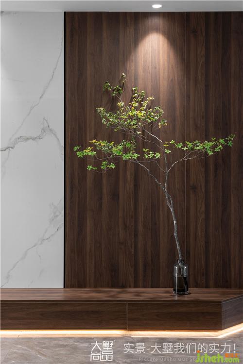 客廳塑造出了一個(gè)機(jī)能和休閑并重的居家空間。原木的墻壁,綠色的盆景,還原最自然的生活狀態(tài)蘇州裝修設(shè)計(jì)。