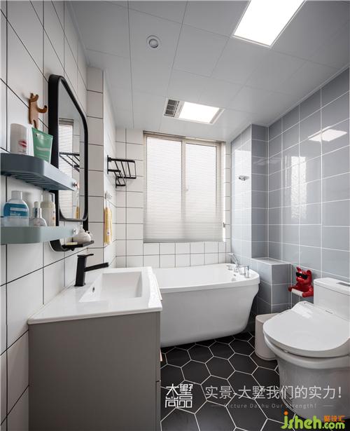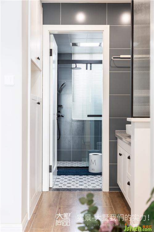 外衛(wèi)采用了干濕分區(qū),解決早上人多一衛(wèi)雙用的功能,拼接瓷磚與純白儲(chǔ)物柜搭配,顏值高,實(shí)用強(qiáng)。