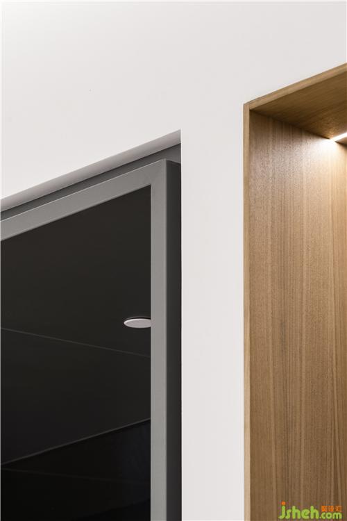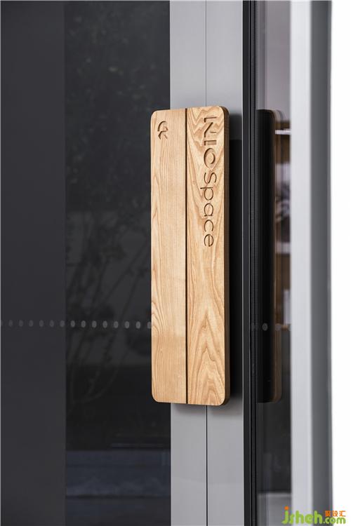 ▼ 實木雕刻的門拉手,低調(diào)的傳達出品牌的調(diào)性和質(zhì)感