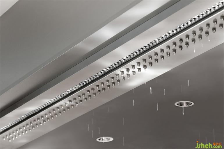 Steel ropes and lights are used in the dining area to create a dining scene in the rain, which is a great experience for users without the water splash.