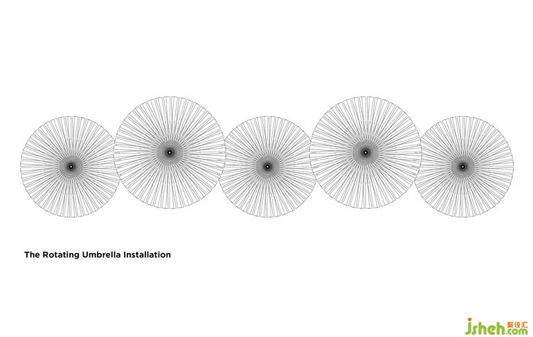 The rotating umbrella installation.