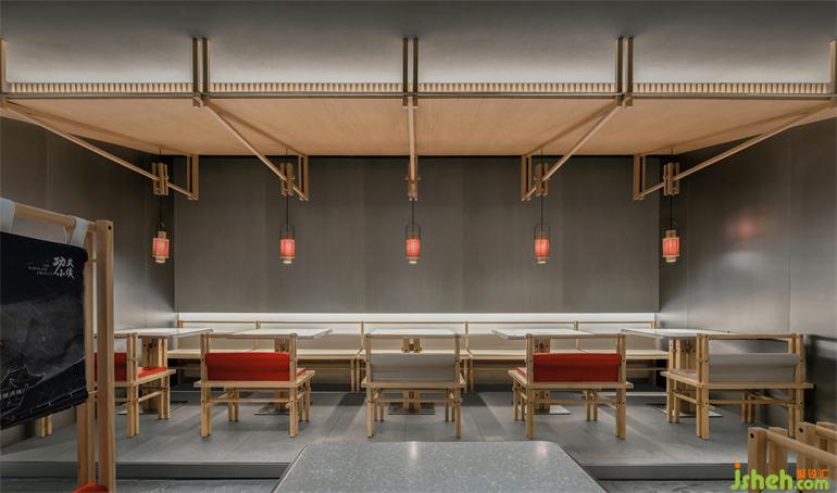 南寧餐廳設(shè)計(jì)從通道看下屋檐下的用餐區(qū)