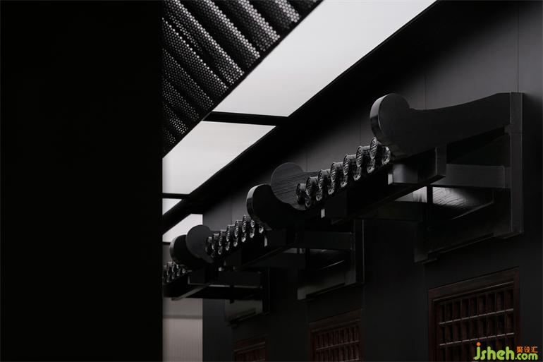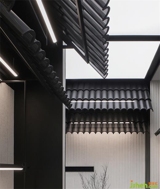 沖孔板制作的現(xiàn)代屋檐掩映下的傳統(tǒng)屋檐