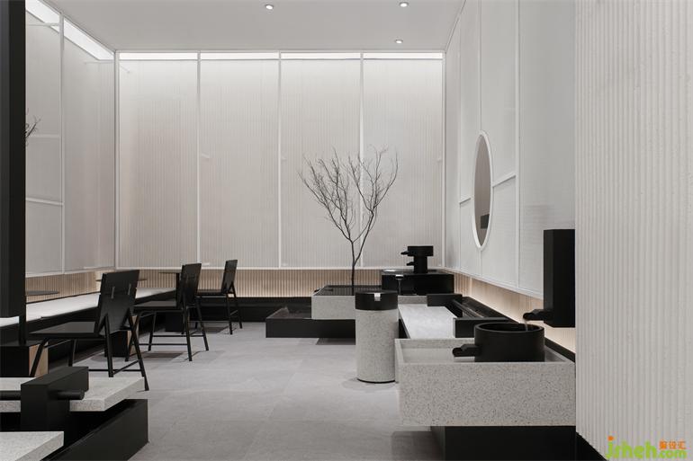 The overall tone of the space and the delicate decorations makes it slow and quiet, while the movement of the water inadvertently brings a pure and fresh experience.