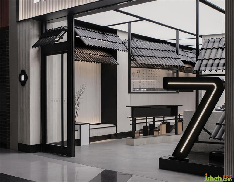 At the entrance, the brand signature “7” stands in the waterscape, like a rockery blending into the landscape. It fits into the overall spatial style, without losing its branding.