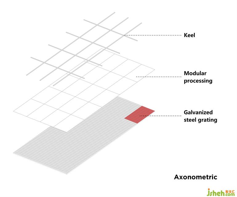 影城設(shè)計(jì)光源與天花金屬網(wǎng)的關(guān)系:從不同的角度可以看到光線透過網(wǎng)格產(chǎn)生的光暈