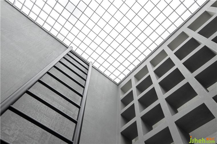 光線從結構體塊之間柔和的灑下