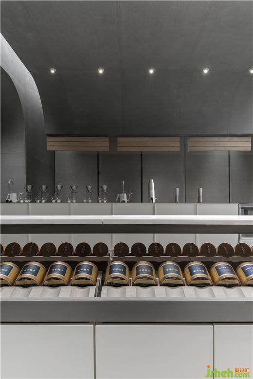 手沖茶店設(shè)計(jì)極簡(jiǎn)的吧臺(tái)形式,搭配品牌自有的手沖茶具