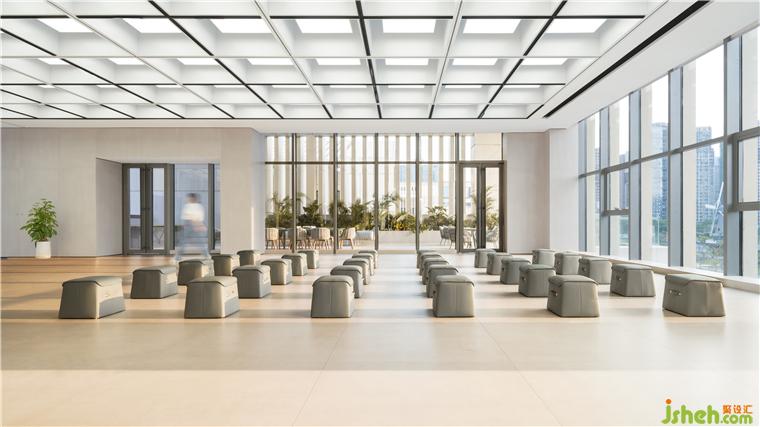 4S店設計通過與運營團隊的充分溝通,MOC在這一層里設置了茶室、會議室和客廳,通過不同的場景來滿足用戶多樣化的使用需求,通過這幾個私密空間的設置,也為三層中部劃出了一個大開間。