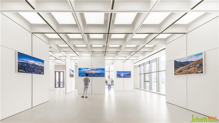 三層的中部空間,MOC運用開敞式的藝術展館的布局方式,并設計了一系列平時被收納在墻體內的移動式隔斷系統(tǒng),4S店設計使空間能夠根據使用場景進行靈活的變動,無論是展覽、論壇、講座、音樂會、瑜伽、健身……這個空間都可以承載。