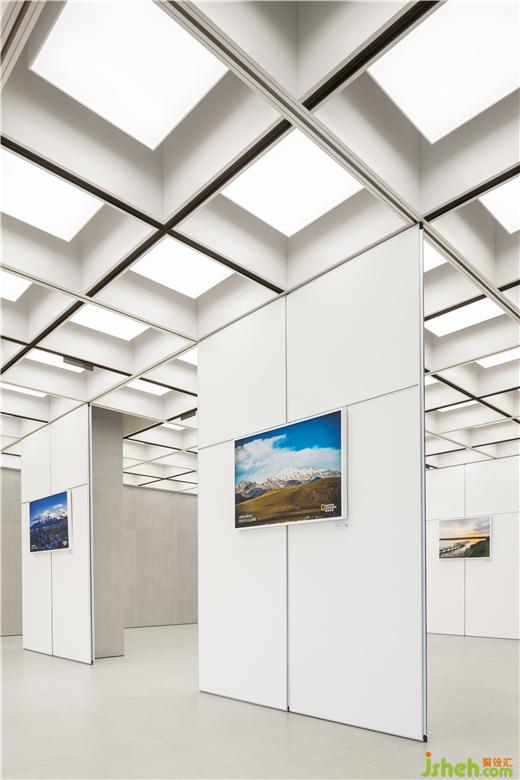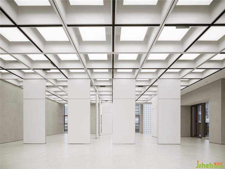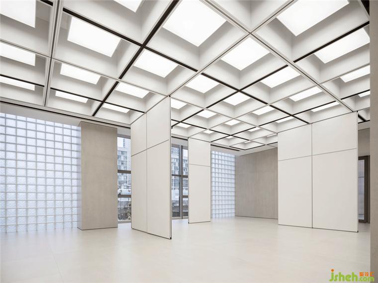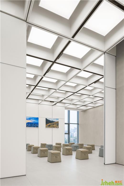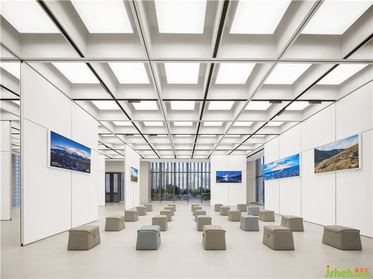 4S店設(shè)計(jì)結(jié)合天花的隱藏式吊軌和萬向輪,讓隔斷可以由一人輕松推動,靈活地進(jìn)行空間場景的轉(zhuǎn)換。