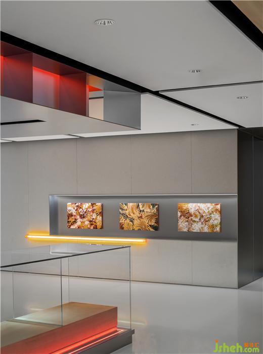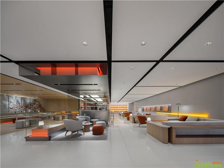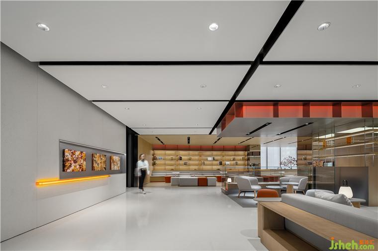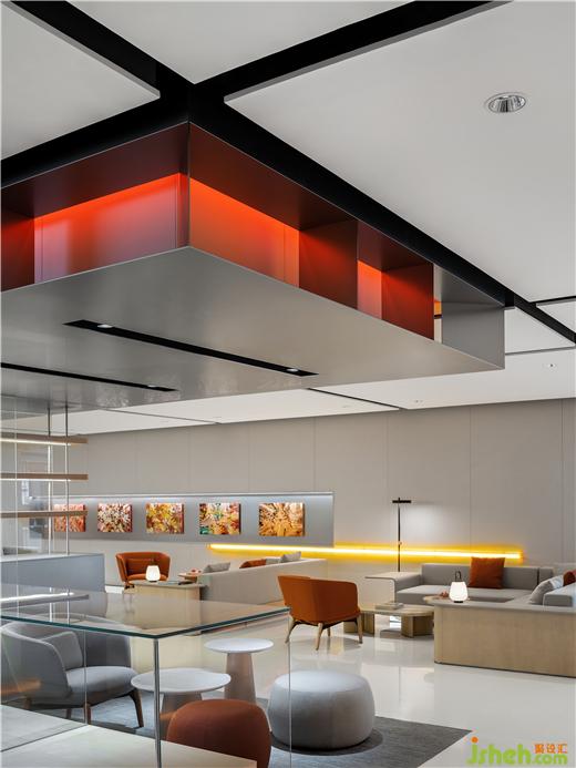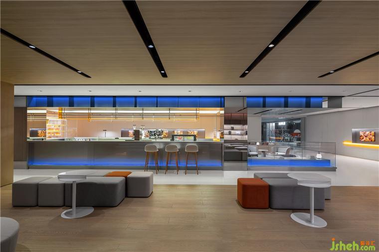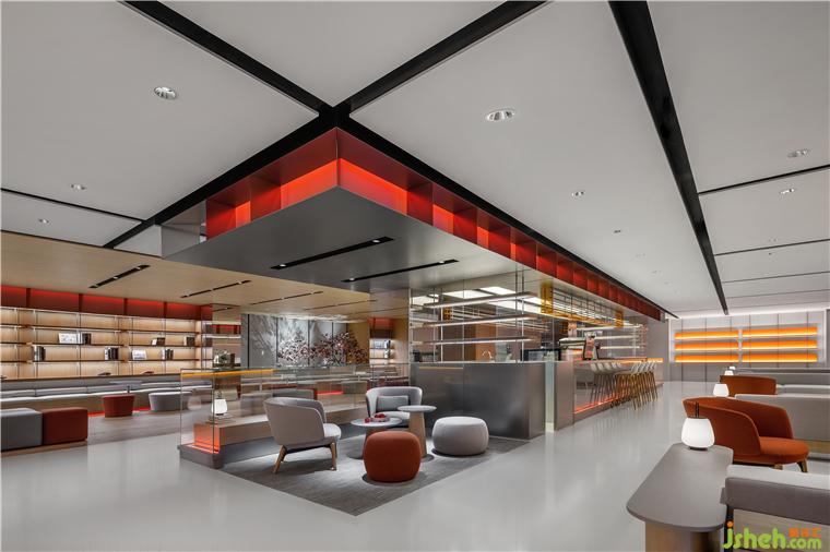 極氪中心展廳設(shè)計師通過燈光色彩和明暗調(diào)節(jié)設(shè)置回應(yīng)不同時段的城市煙火——白天是工作休閑的咖啡時光,夜晚則是氛圍感十足的微醺時間。
