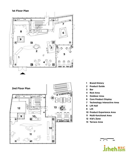 作為一個綜合性的商業(yè)空間,惠而浦之家不僅需要滿足品牌文化展示、體驗(yàn)展廳和活動論壇場地等多重需求。體驗(yàn)中心設(shè)計(jì)師將不同的功能置入不同的樓層,使來訪者在層層遞進(jìn)的參觀旅程中,獲得從文化、體驗(yàn)到產(chǎn)品的完整體驗(yàn)。