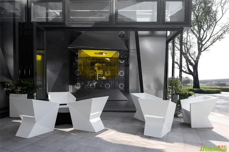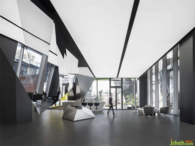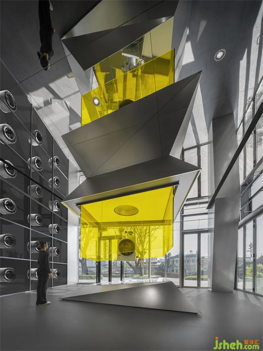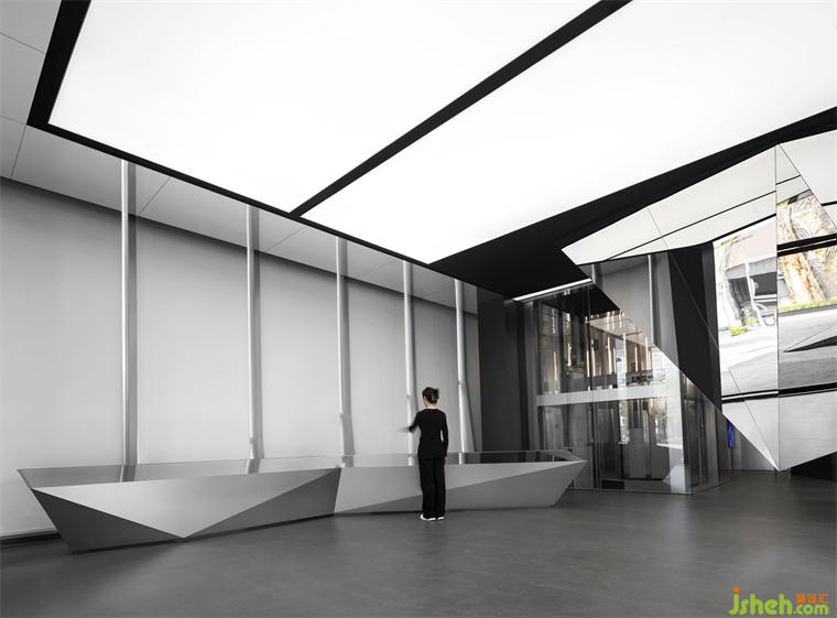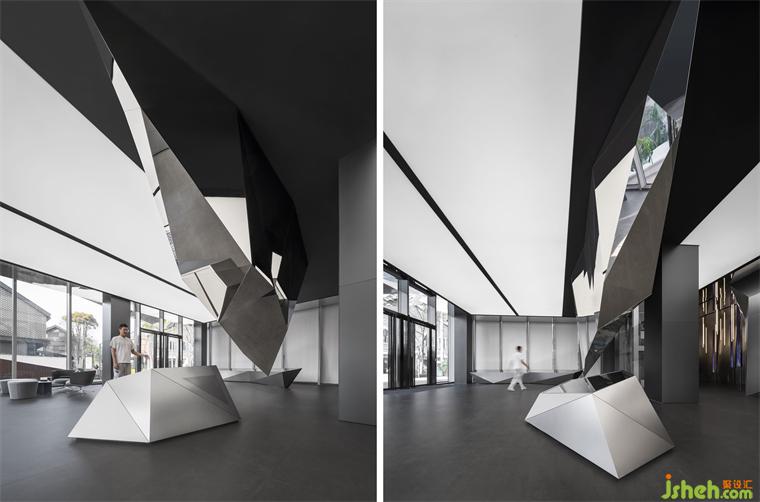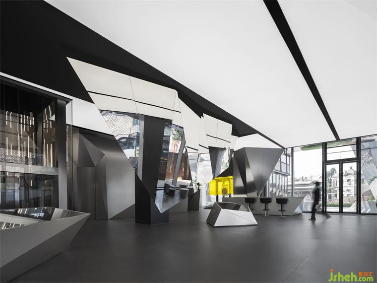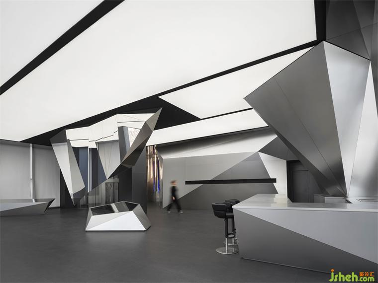 一層圍繞棱鏡裝置,構(gòu)筑出整體冷峻科技的空間調(diào)性。