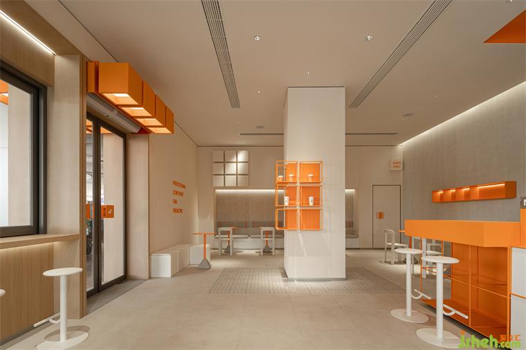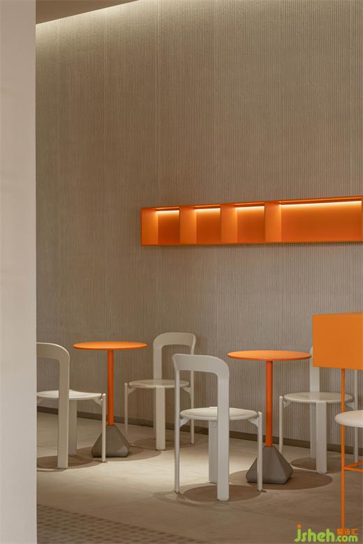 ▲橙色的cube構(gòu)成的入口屋檐一直延伸至室內(nèi)