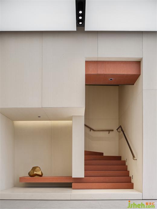 The structure divides the exhibition hall and the user club into two blocks. The designer chose beige stone as the main material for the space, setting a warm and soft tone, and controlling different material combinations on the upper and lower levels to interpret different styles of functional spaces.