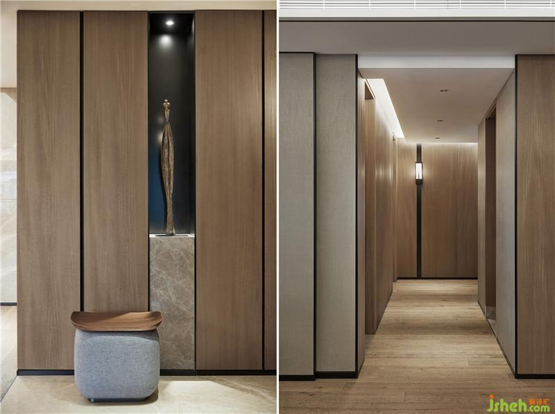 主要用材:石材、黑鋼、拉絲黃銅、木飾面、木紋鋁方通等