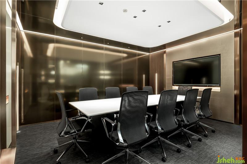 前廳空間意念由接待臺(tái)LOGO標(biāo)識(shí)的水、木之形開(kāi)始,延伸至水波紋形狀的石材背景墻,頂面寓意星空未來(lái)感的燈飾點(diǎn)綴在智慧城市的暢想中,共同構(gòu)筑一個(gè)融于自然的人性化科技美學(xué)空間。辦公室設(shè)計(jì)