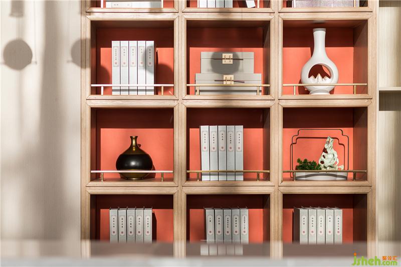 簡潔又不失裝飾性的造型語言所表現(xiàn)出來的基于線條裝飾性,靈活運用重復、對稱、漸變等設計手法,使幾何造型充滿詩意和富于裝飾性。博古架也是設計師所特別打造的亮點之一,這種不刻意不夸張,自然流露的設計于無聲中印入心靈,留給人與自然、美學更多的對話。