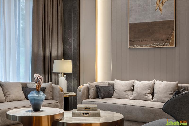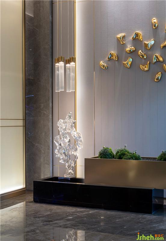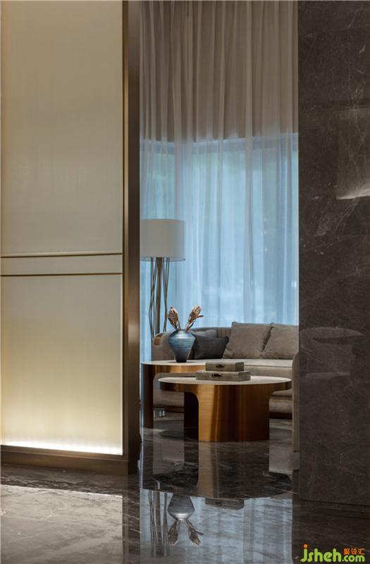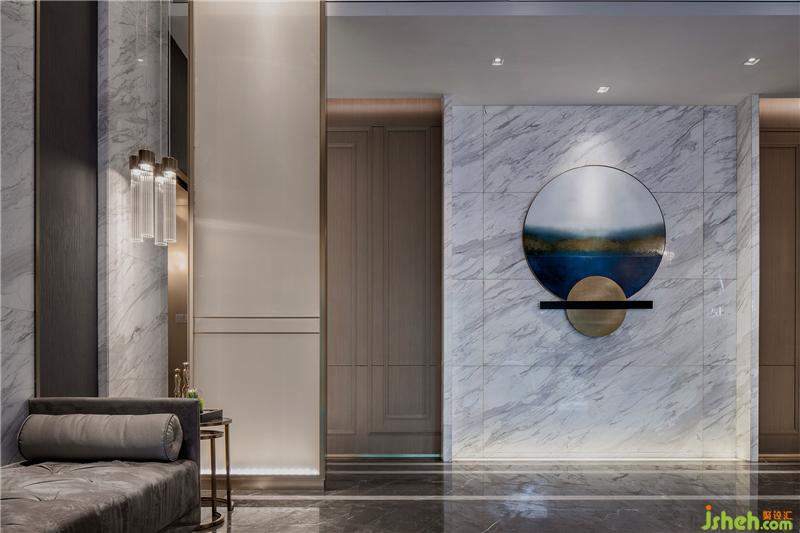 石材、墻布、肌理漆、工藝玻璃、香檳金不銹鋼等材質(zhì)交互組合,若隱若現(xiàn)的視覺效果奢華而不刻意、簡練而不單調(diào),在空間里勾起情感的互動思想的交流。裝修公司