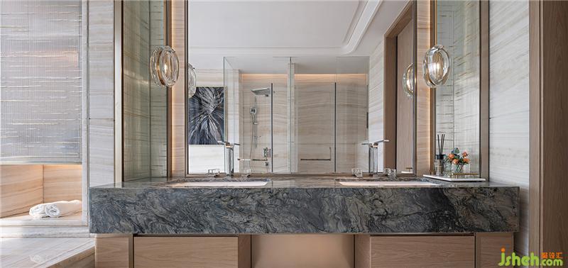 年輕、國際化的造型設計手法體現在每一處細節(jié)中,我們試圖為空間營造一個內涵卻不張揚的藝術基調,通過造型與裝飾點睛居者的藝術氣質 。過道處正圓去銳角的弧型頂面與地面方圓結合,絕對與相對中思考生活的哲學,表達者新一代都市貴族對生活的思考;彰顯藝術品味的擺件與裝飾畫,是喜好,更居者藝術品味與生活狀態(tài)的交融,就像自然界中萬物共生的境界一樣,藝術、生活、家與關聯它們的那個人的氣質息息相關。蔓延著業(yè)主夫婦藝術氣息的空間里,每一處設計都不是有意而為。