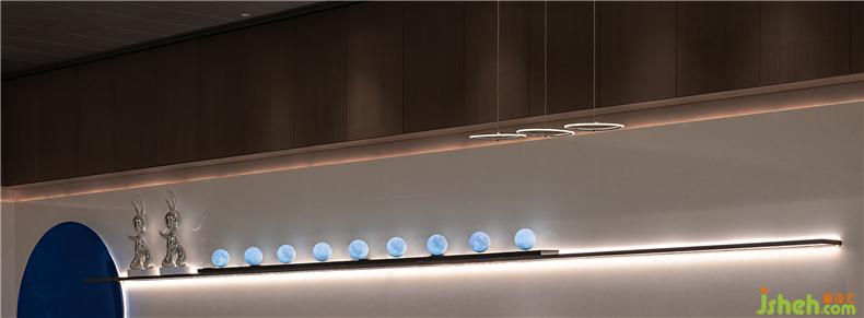 配合宇宙星辰的概念,在裝飾上我們主張將整個(gè)空間的美學(xué)語(yǔ)言柔化于光線,讓光在弱化物質(zhì)形態(tài)的空間里自由穿梭,就像是星體間竊竊而語(yǔ)的摩斯密碼,形成某種藝術(shù)概念和人文意義。