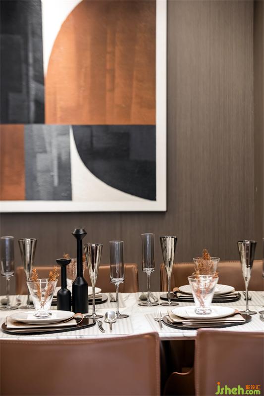 餐廳與客廳融于一體,設計兼具時尚與浪漫。