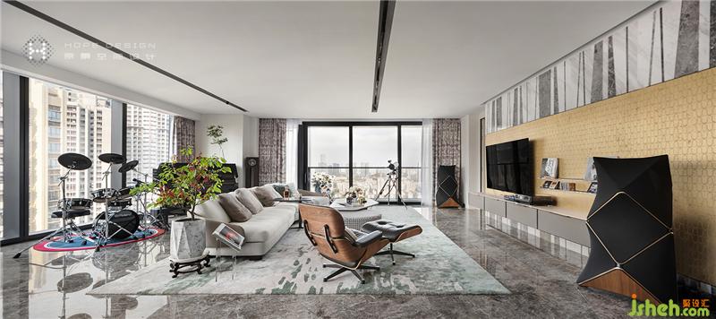 以MODERN ART -DECO的曲調(diào)譜寫一首獻(xiàn)給流金歲月的歌,運(yùn)用金屬材質(zhì)的烘托讓它得以播放,相互交織、拼接的紋路讓空間元素更加豐富,而其本身獨(dú)有的延展性特點(diǎn)使得客廳更加多元化且充滿質(zhì)感。