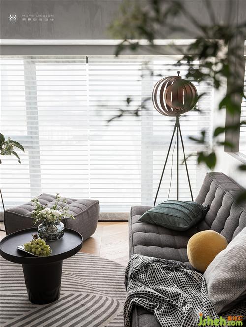 柔軟彈性沙發(fā)搭配創(chuàng)意式落地燈,在休憩的同時不缺氛圍感。