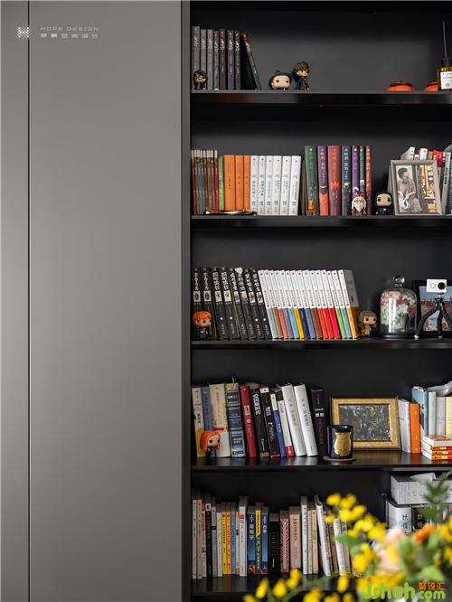 現(xiàn)代感書柜顏色與書桌遙相呼應,增強整體感。日月流轉的光影輕鋪在書籍與油畫,深圳裝修設計記錄著抵達過的每一個清晨和夜晚。