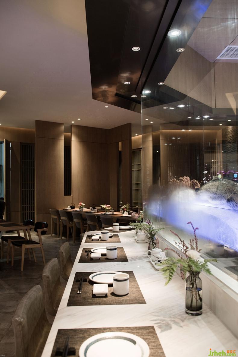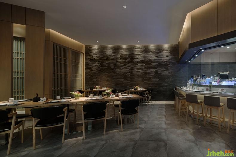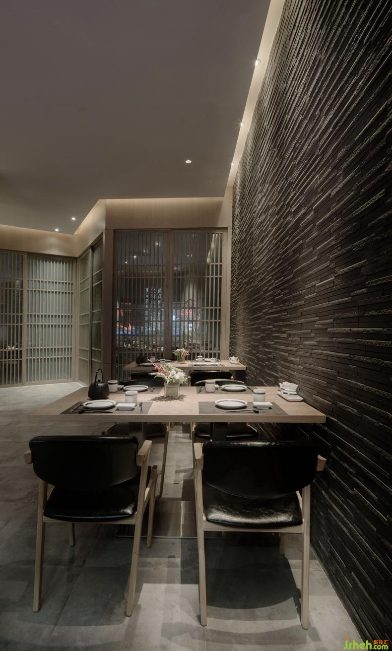 本案中設(shè)計(jì)師的目的是將餐廳打造成一個(gè)簡(jiǎn)約寧?kù)o、回歸理性的就餐環(huán)境,讓材料展現(xiàn)其本身的樣貌,讓美食回歸其食材的本質(zhì)。