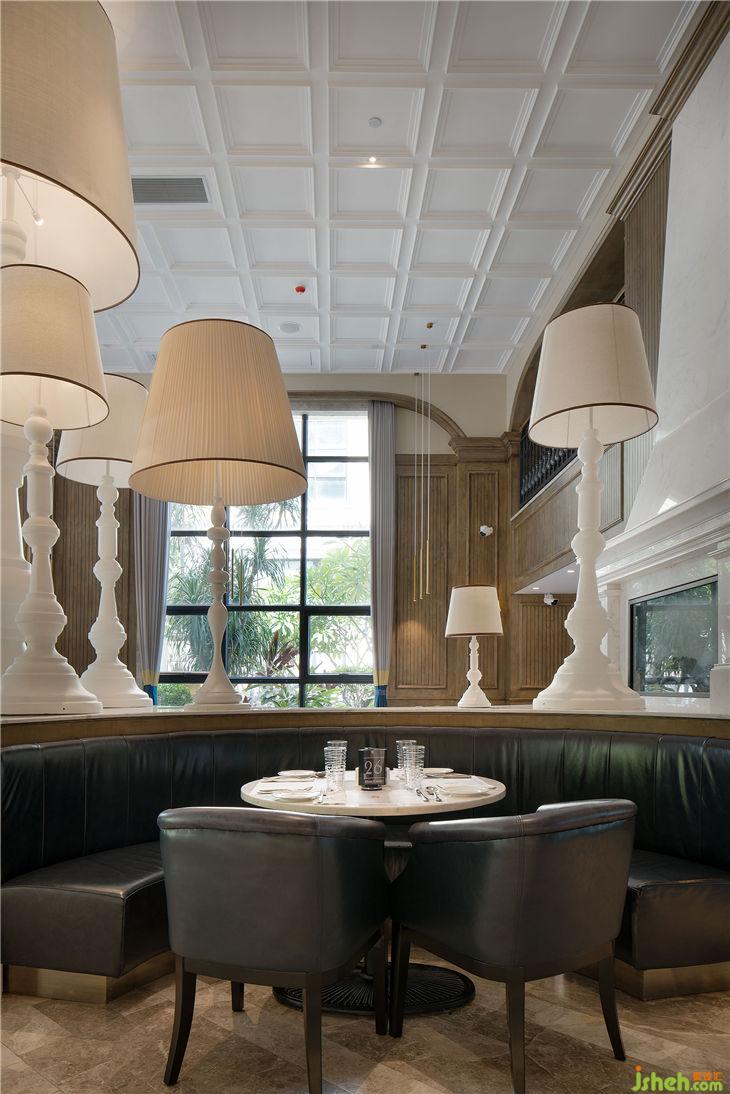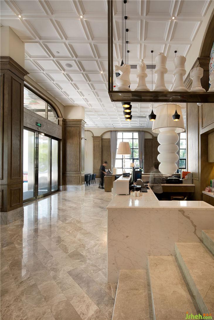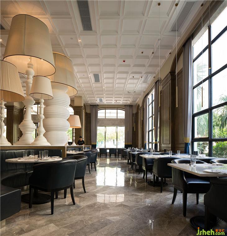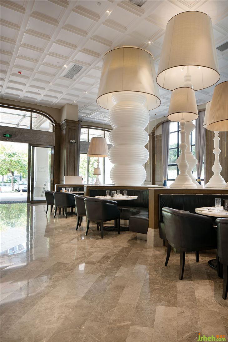 巴黎是著名的世界藝術之都,是芭蕾舞的誕生地,我們希望賦予西餐廳一種寧靜和芭蕾舞者優(yōu)雅的氣質,沉穩(wěn)的咖啡色調中,融入時尚元素。一對舞動著的芭蕾舞者,一個醒目的小提琴,一本翻閱著的琴譜,一組夸張的大型臺燈無不讓人眼前一亮而印象深刻。小天使的雕塑與國際象棋的吊飾,讓空間產生互動與趣味性的同時,彌漫著濃郁的古典色彩。三層連廊以白色的永恒為基調,粉紫色的溫馨浪漫情懷。無數(shù)條白色鋼管編織而成的穹頂,牽動著每一對新人激動的心緒,讓彼此的心走得更近。